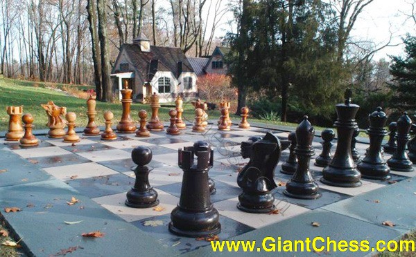 Life-Size Chess Set On the garden grounds we have a life-size chess set designed